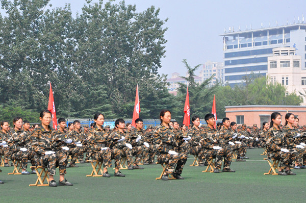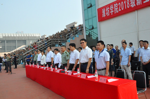 本网讯 9月22日,2018级新生军训汇报表演暨表彰总结大会在学校体育场举行。承训部队的副部队长刘坦克中校、高新区人民武装部副部长齐瑞民、学校领导孙文亮、冯滨鲁、马茜华、赵光强、王旭升出席了大会,大会由党委副书记王清明主持,各二级学院、各部门主要负责同志参加了会议。军训团团长少校邵帅主持军训科目表演。