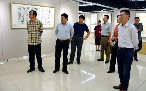 本网讯 9月26日,美术学院举办的迎国庆首师大书法硕士博士作品邀请展在潍坊学院美术馆开展。学校党委书记孙文亮参观了书法展,美术学院师生与参展书法家进行了现场研讨。