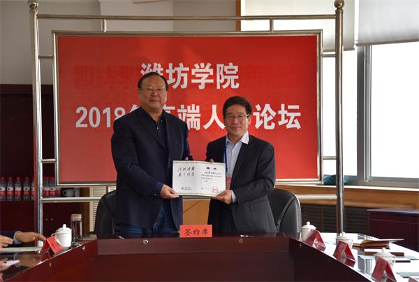 本网讯 10月12日至15日,山东省2018青年学者泰山国际论坛潍坊学院分论坛暨潍坊学院2018高端人才论坛在我校举行。12日上午,校长冯滨鲁、副校长赵光强出席专家见面会,受邀来自国内知名高校和科研院所的20多名专家学者,学校相关职能部门和部分二级学院负责人参加了会议。