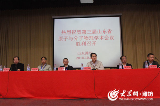 10月19日至21日,由山东省物理学会原子与分子物理专业委员会主办,潍坊学院物理与光电工程学院承办的第三届山东省原子与分子物理学术会议于在闻韶楼报告厅举行。潍坊学院副校长赵光强出席大会开幕式并致辞。