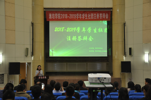 本网讯 近日,学校团委、学生社团联合会在行政楼一楼报告厅举行潍坊学院2018-2019学年校级学生社团注册答辩会。学校党委副书记王清明出席答辩会。