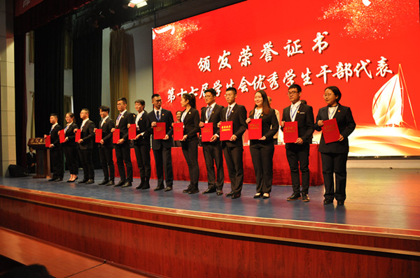 会上,团委副书记宣读第十八届学生会骨干成员名单,与会领导为第十七届校学生会优秀学生干部代表颁发了荣誉证书。第十八届校学生会主席作表态发言,他倡导新一届学生会成员要把加强思想引领作为首要目标任务,把坚持服务同学作为基本出发点,把丰富校园文化活动作为工作重点,把强化自身建设作为工作基础,为同学们的成长成才、为学校的建设发展贡献一份力量。