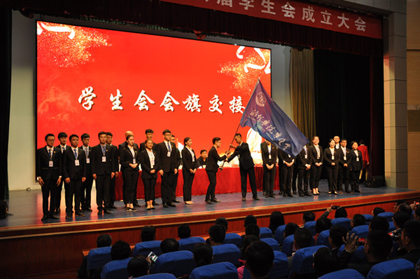 会上,学生干部代表宣读了《学生会、研究生会干部自律公约》,新老两届校学生会主席团进行了会旗交接仪式。在场的第十八届校学生会成员在校学生会主席的带领下进行宣誓。随后,校学生会主席代表校学生会向秘书长颁发聘书。