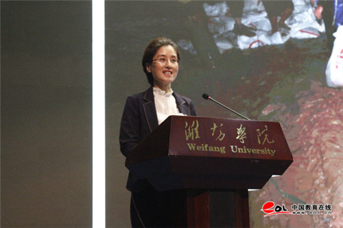 潍坊学院领导冯滨鲁、王清明、马茜华、朱猷武、赵光强、王旭升,处级干部,各二级学院学工办、团总支负责人,学生代表聆听了报告。