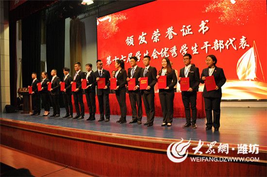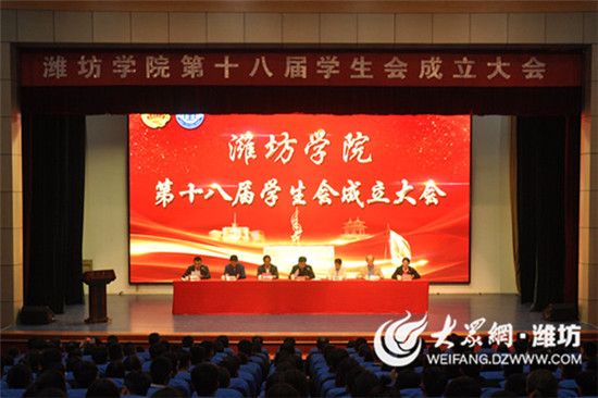 10月25日,潍坊学院第十八届学生会成立大会在图书馆报告厅举行。潍坊学院党委副书记王清明出席大会,党委宣传部、学生工作处、教务处、保卫处、团委负责同志,各学院学生工作负责人,各团总支书记、副书记和校学生会骨干成员近500人参加了会议。大会由潍坊学院团委负责人主持。
