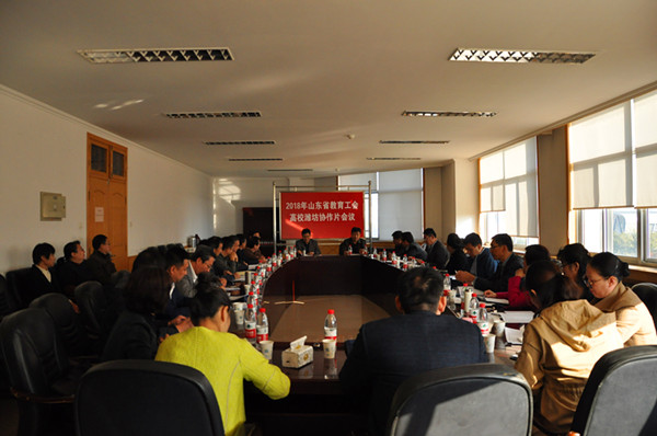 本网讯 10月30日,2018年山东教育工会高校潍坊协作片会议在我校行政楼五楼东会议室举行。中国石油大学、山东理工大学、潍坊医学院、滨州医学院、滨州学院等十五所院校的工会主席、副主席共25名代表参加了会议。会议由中国石油大学工会主席张军主持,我校党委副书记王清明出席并致欢迎词。
