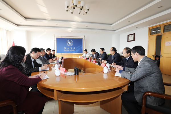孙文亮对郁章玉、吕灵昌一行的来访表示欢迎。他简要介绍了学校的历史沿革、基本概况和发展情况,重点介绍了学校在干部选拔任用考核、意识形态工作校内巡查制度建设、本科教学审核评估工作、师德师风及教师思想政治工作、人事制度改革等方面的做法和经验。双方还就学校综合改革、招生就业等内容进行了深入交流。