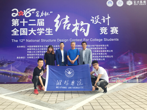本网讯 11月8日~11日,由中国高等教育学会工程教育专业委员会、高等学校土木工程学科专业指导委员会、中国土木工程学会教育工作委员会、教育部科学技术委员会环境与土木水利学部联合主办的,第十二届全国大学生结构设计竞赛在华南理工大学举行。经过四天紧张激烈的角逐,由我校建筑工程学院2015级本科生王方方、尹智璇、姜文翰三名同学组成的代表队,在指导老师的带领下成功斩获二等奖,成绩排名位居山东省参赛高校首位。