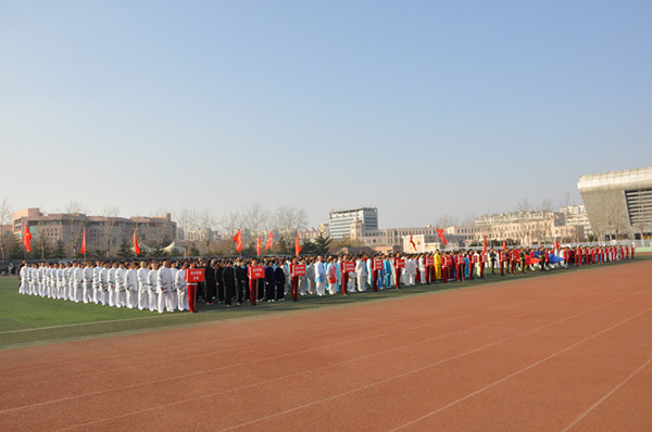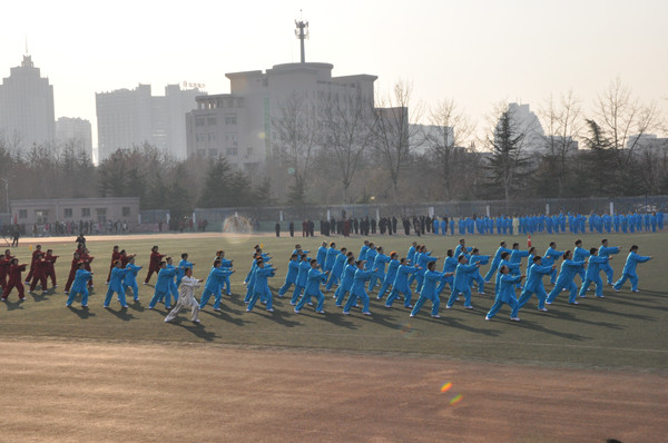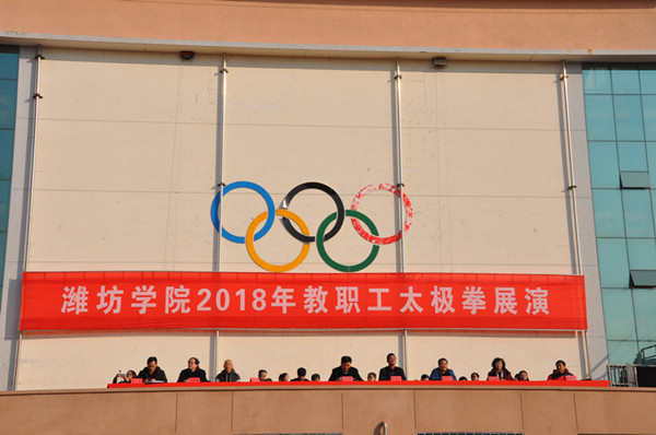 本网讯 12月20日下午,潍坊学院教职工太极拳展演在学校体育场举行。学校党委书记孙文亮、副书记王清明出席展演,潍坊市体育局党组成员、体育总会主席刘树宏,潍坊市老年体协常务副主席兼秘书长窦义文莅临现场,体育局及体育学院的有关同志担任评委,各分会负责同志在主席台就坐。