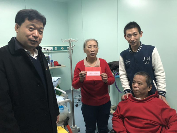 本网讯 12月25日上午,学校党委副书记王清明在离退休工作处负责同志陪同下,到阳光融合医院看望慰问生病的老党员王庆山。王清明详细了解了王庆山的治疗情况、身体状况以及孩子的学业情况等,代表学校送上慰问金,也送去学校党委、行政对王庆山一家的关心与新年祝福。
