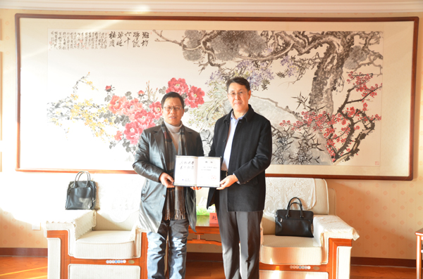 本网讯 12月13日,湖南师范大学夏新华教授应邀来到我校法学院,为师生作了题为《新中国宪制发展中的移植与创新》的学术报告。报告会前,副校长赵光强向夏新华教授颁发了特聘教授聘书,并进行了座谈。