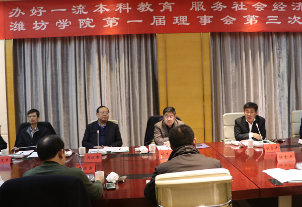 参会理事围绕会议主题进行了热烈讨论。副理事长、景芝酒业董事长刘全平从产学研角度介绍了山东食品科技职业学院的筹建情况,提出了校地联合共同发展的新思路。高新区政府代表、高新区教育局局长杜全平理事对潍坊学院为高新区基础教育的帮助和支持表示感谢,并提出下步重点合作项目。理事单位代表歌尔股份有限公司党委王海滨书记对校企合作申报高层次项目提出了相关建议。理事单位代表、北汽福田副总裁张茂华从专业建设角度分析当前高校面临的挑战,建议学校改造传统专业以适应行业发展需求。理事史启航对学校人才培养与产业发展结合提出了建议。理事、副校长赵光强介绍了学校硕士学位授予单位申报工作情况。理事、招生就业处负责同志对学校招生就业情况进行了介绍。