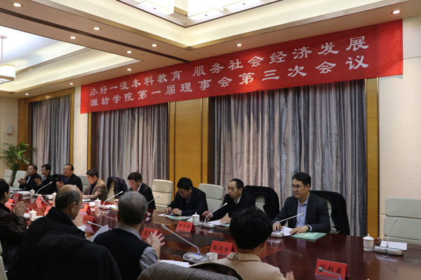 本网讯 1月22日,学校第一届理事会第三次会议在理事单位山东景芝酒业股份有限公司齐鲁酒地召开,会议主题是“办好一流本科教育服务社会经济发展”。学校领导孙文亮、冯滨鲁、丁子信、朱猷武、赵光强出席会议。全体理事包括政府领导、行业组织、企业单位、社会知名人士、杰出校友,学校相关部门负责人、师生代表参加了会议。
