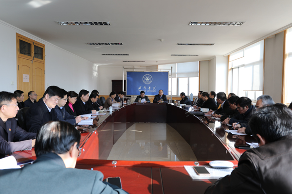 孙文亮在总结讲话时强调,学校广大党员干部要自觉以“担当作为、狠抓落实”动员大会精神和全省教育大会精神为指引,坚持率先垂范,先学先思、学深学透,用会议精神武装头脑、指导实践、推动工作,进一步提升善学、善谋、善作、善成的能力和本领,不断把学校事业发展推向新的高度。