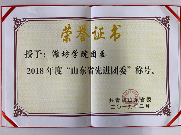 本网讯 日前,共青团山东省委对2018年度山东省共青团工作先进集体和个人进行表彰,我校团委再次荣获2018年度“山东省先进团委”荣誉称号。