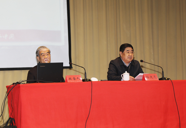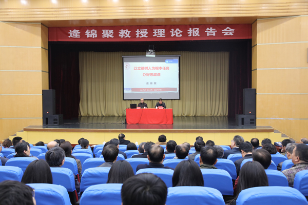 本网讯 4月11日,学校在闻韶楼报告厅召开党委理论学习中心组(扩大)学习会,专题学习习近平总书记在学校思想政治理论课教师座谈会上的重要讲话精神,学习会邀请了座谈会参加者、我校杰出校友、我校马克思主义学院名誉院长、南开大学逄锦聚教授作辅导报告。学校党委书记孙文亮,党委副书记、校长冯滨鲁,党委委员马茜华、赵光强、王旭升出席学习会。
