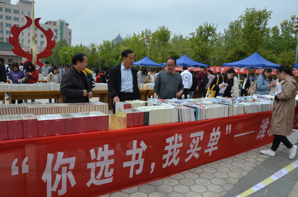 本网讯 4月23日,在第24个“世界读书日”来临之际,由图书馆举办的“你选书,我买单”读者荐购图书活动在名人广场举行。副校长朱猷武到现场观摩了荐书活动。
