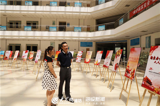 为深入贯彻落实习近平总书记关于国家安全工作的系列重要指示精神,进一步筑牢校园安全防线,营造“平安校园”浓厚氛围,6月11日—13日,由潍坊学院学生工作处主办,美术学院学生党支部承办的“维护国家安全,喜迎70华诞”国家安全主题展板设计大赛优秀作品展在图书馆一楼大厅开展。潍坊学院学生工作处副处长张增森,学生教育科科长边洪燕在美术学院负责同志陪同下观看了展览。