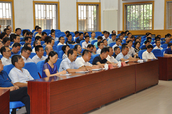 本网讯 9月11日,我校“不忘初心、牢记使命”主题教育工作会议在闻韶楼报告厅召开。省委主题教育第十二巡回指导组副组长唐德才出席会议并讲话,党委书记孙文亮作动员讲话,党委副书记、校长冯滨鲁主持会议。巡回指导组成员周运宝、刘进,学校党委领导班子成员、全体处级干部、各党支部书记参加会议。