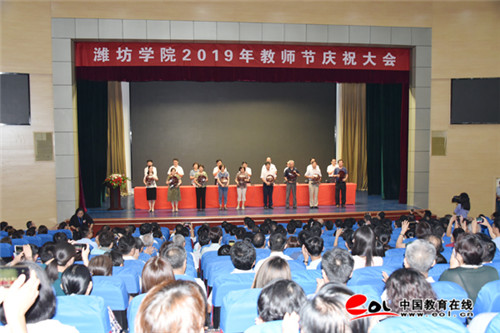 中国教育在线讯 9月10日,在第35个教师节到来之际,潍坊学院在图书馆报告厅举行2019年教师节庆祝大会,表彰2019年以来获得市级以上荣誉称号教师,为37名荣休教师颁发纪念品,94名新进教师举行庄严的入职宣誓。潍坊学院党委书记孙文亮出席大会并讲话, 大会由潍坊学院校长冯滨鲁主持。潍坊学院领导王清明、丁子信、马茜华、朱猷武、赵光强、王旭升、王建新出席大会。