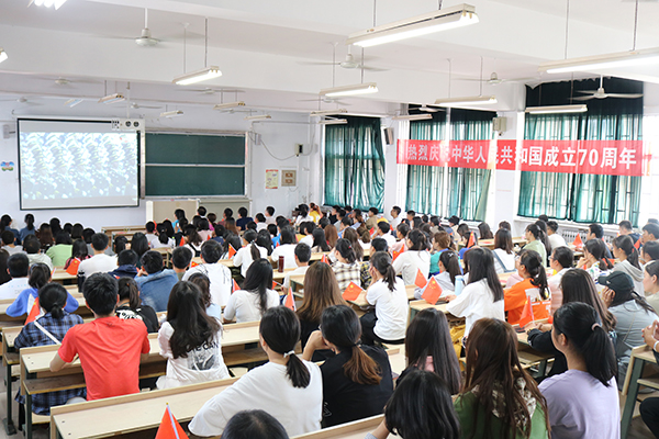 本网讯 10月1日上午10时,庆祝中华人民共和国成立70周年大会在北京天安门广场隆重举行。中共中央总书记、国家主席、中央军委主席习近平发表重要讲话并检阅部队。我校组织师生通过多种途径、多种形式收看大会盛况,共同聆听习近平总书记的重要讲话,回顾新中国成立70周年来走过的伟大历程,为祖国的繁荣昌盛而骄傲欢呼。