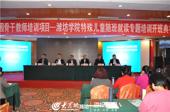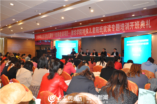 10月15日,潍坊学院举行2019年山东省幼儿园骨干教师特殊儿童随班就读专题培训班开班典礼。潍坊学院副校长丁子信出席开班仪式并致辞。潍坊学院教务处负责同志和特教幼教师范学院领导及全体培训学员参加了典礼。