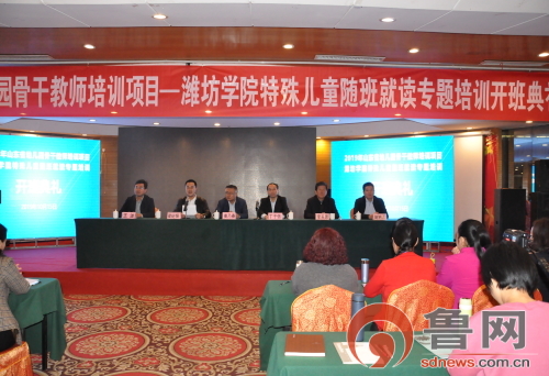 鲁网10月15日讯 10月15日,潍坊学院举行2019年山东省幼儿园骨干教师特殊儿童随班就读专题培训班开班典礼。潍坊学院副校长丁子信出席开班仪式并致辞。潍坊学院教务处负责同志和特教幼教师范学院领导及全体培训学员参加了典礼。