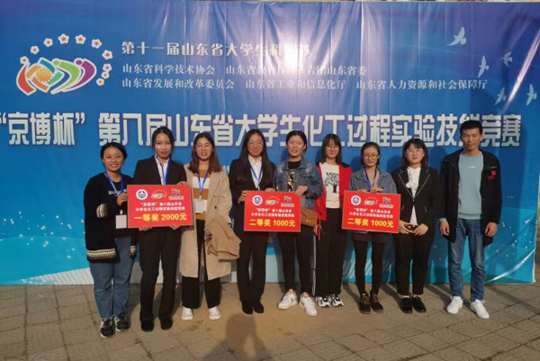 本网讯 10月28日至30日,由山东省科学技术协会、山东省教育厅、共青团山东省委等单位联合主办的“京博杯”第八届山东省大学生化工过程实验技能竞赛在青岛科技大学举行,我校化学化工与环境工程学院组成的竞赛团队不畏强手,团结拼搏,荣获团体一等奖1项、二等奖2项、三等奖5项。