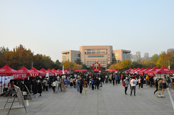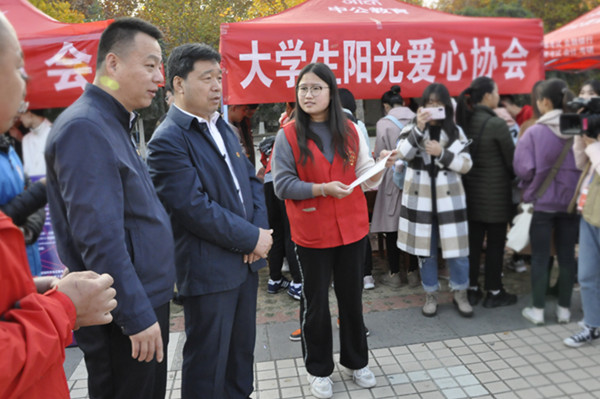 本网讯 11月8日至10日,由学校团委、学生社团联合会组织开展的第十二届社团文化节开幕式暨学生社团纳新大会,在主校区行政楼北广场和图书馆前广场举行。学校党委副书记王清明莅临纳新现场指导工作。