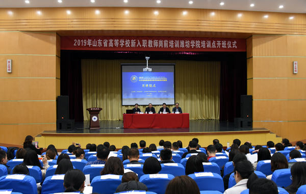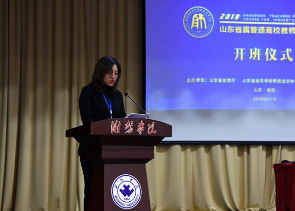 本网讯 11月14日,2019年山东省属普通高校教师岗前培训面授开班仪式在我校顺利举行,校长冯滨鲁以《新时代高校教师的使命与担当》为题给学员们作了开班第一讲,副校长赵光强发表致辞,人事处、教师教育学院负责同志和来自全省36所高校的120位学员参加开班仪式。