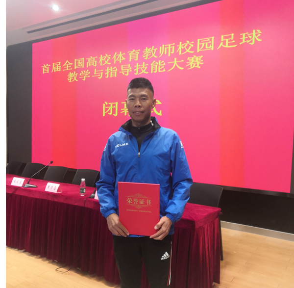 本网讯 11月18日至20日,全国首届高校体育教师校园足球教学与指导技能大赛于在南京大学举行。我校体育学院王福祥老师代表山东省参加了本次比赛,并荣获三等奖。