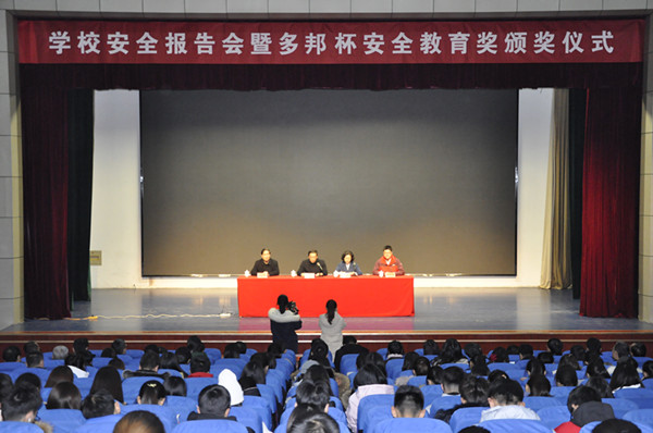 本网讯 12月19日,学校在图书馆报告厅举行《山东省学校安全条例》宣讲报告会暨潍坊学院多邦杯安全教育奖颁奖仪式。副校长王旭升主持仪式。山东多邦保安服务有限公司总经理邹艳梅女士出席仪式并致辞。