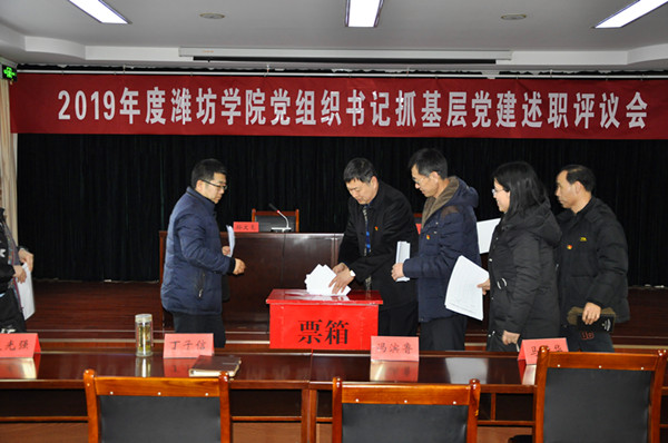 本网讯 2020年1月8日,学校召开2019年度党组织书记抓基层党建述职评议会。学校党委书记孙文亮主持会议并讲话。校党委副书记冯滨鲁、党委委员丁子信、马茜华、赵光强、王旭升、王建新出席会议。