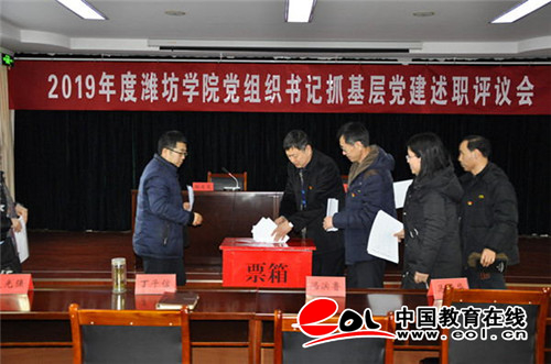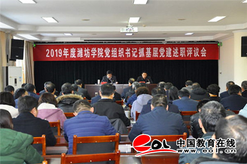 中国教育在线讯 2020年1月8日,潍坊学院召开2019年度党组织书记抓基层党建述职评议会。潍坊学院党委书记孙文亮主持会议并讲话。潍坊学院党委副书记冯滨鲁、党委委员丁子信、马茜华、赵光强、王旭升、王建新出席会议。