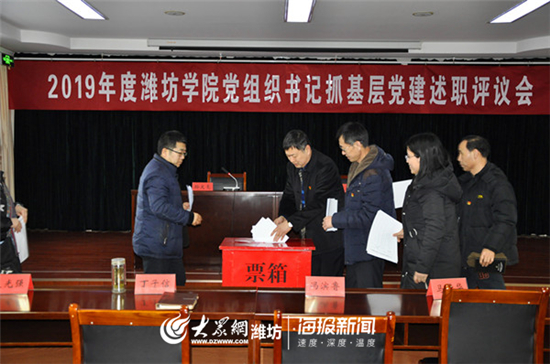 据了解,潍坊学院从2016年开始进行党总支(党委、直属党支部)书记基层党建工作述职评议,到2018年已完成一轮现场述职,实现了全覆盖,扎实推动全面从严治党向基层延伸。根据省、市委组织部的要求,今年开始新一轮现场述职,并通过抽签方式随机确定了10个党组织进行现场述职,其他党总支(党委、直属党支部)进行书面述职。
