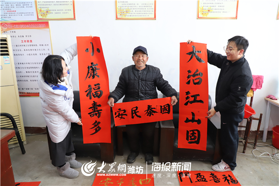 乡亲们拿到写满祝福的春联,一边欣赏,一边赞叹。“快过春节了,我选了一副‘小康福寿多,大治江山固’的春联,祝愿家人也祝福祖国。”朱楼村八十高龄的朱传友大爷说。辛庄村支书李堂群说“潍坊学院美术学院的老师同学们给村民们送来了温暖、送来了祝福、送来了文化、同时更是送来了一份浓浓的爱。”“盈盈的年味,浓浓的关怀。此次活动让我深切体验到了文化传承的意义所在,体会到了政府对老百姓时刻放到心上的温暖,坚信在中国共产党的正确领导下,全国人民的共同努力下,不忘初心,砥砺前行,一定能够掀开小康生活的新篇章。我也会以实际行动参与其中,期待长风破浪会有时,直挂云帆济沧海的那一刻。”学生党员刘颜边写边说。