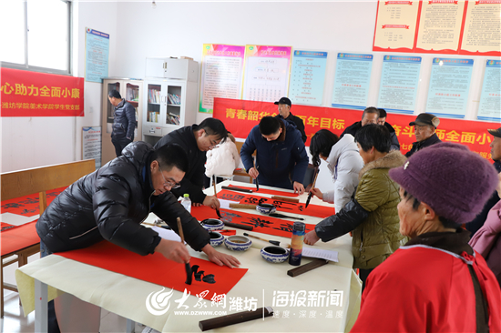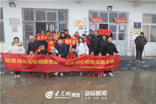 农历庚子年来临之际,伴随着冬雪,沐浴着冬韵,1月7日至9日,潍坊学院美术学院学生党支部组织师生党员一行9人赴聊城市茌平区对接学校驻村第一书记,开展“翰墨清风书写乡村振兴 守正初心助力全面小康”主题活动,写春联迎新春,送文化助脱贫。