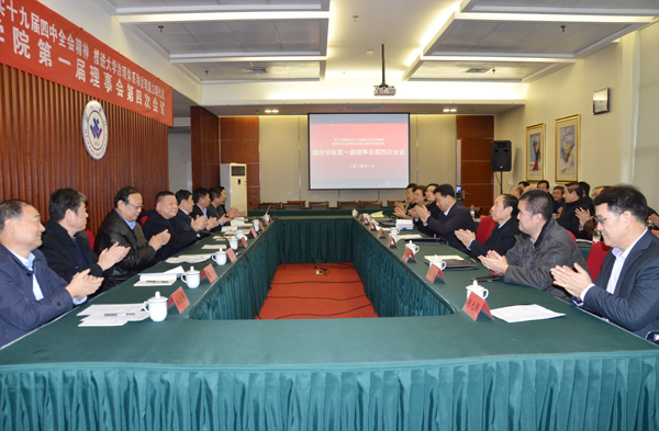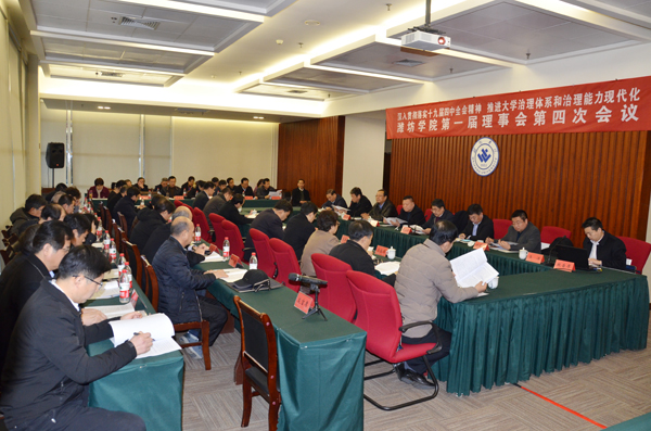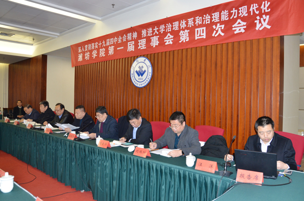 本网讯 1月15日,学校第一届理事会第四次会议在体育馆会议室召开。本次年会的主题是“深入贯彻落实十九届四中全会精神,推进大学治理体系和治理能力现代化——关于加强二级学院理事会建设的研讨”。学校理事会理事长、党委书记孙文亮作理事会年度工作报告。会议增补王建新为学校理事会理事。青岛科技大学校友工作办公室副主任汪洋作辅导报告。两个二级学院的代表作交流发言。原市政府顾问、学校原党委书记、学校理事会名誉理事长辛丕宏和理事会全体成员参加会议。学校各二级学院党总支书记和院长列席会议。会议由学校理事会常务副理事长、校长冯滨鲁主持。