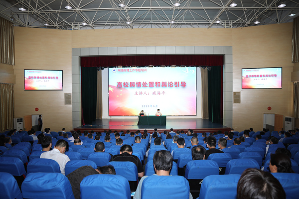 本网讯 6月11日,学校召开网络舆情工作专题培训会,邀请山东大众信息产业有限公司总经理助理、山东省互联网传媒集团大众网互动评论中心副主任、理论评论部主任、《大众舆情参考》杂志主编臧海平作辅导报告。