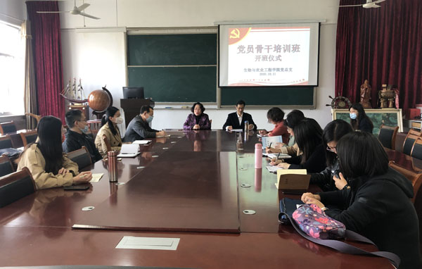 本网讯 为深入贯彻习近平新时代中国特色社会主义思想和党的十九大精神,全力提升新时代基层党建工作质量,增强新时代基层支部的创造力、凝聚力、战斗力,10月21日,生物与农业工程学院党总支组织开展了线下党员骨干培训班活动。院长曹慧在开班仪式上作讲话。开班仪式由党总支副书记冯道俊主持。