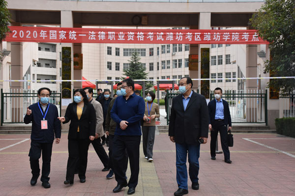 考试期间,在校长冯滨鲁的陪同下,国家司法部普法和依法治理局一级巡视员刘宪国,省司法厅党委副书记、副厅长(正厅级)周立军,市人民政府副市长、市公安局长孙刚,市司法局党委书记、局长孙淑芳,对考试进行了巡视。省司法厅督考组负责同志对考试进行了全程督考。各位领导对我校的考试组织、考场秩序、疫情防控、后勤保障等工作给予了充分肯定,一致认为我校安排周密,措施到位,组织有序,考试进展顺利。