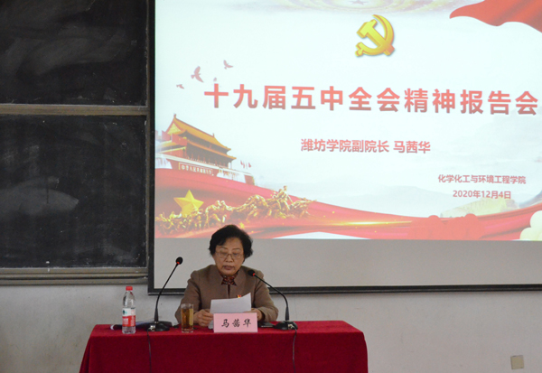 马茜华从“党的十九届五中全会的重大意义和《中共中央关于制定国民经济和社会发展第十四个五年规划和二○三五年远景目标的建议》的主要内容”“十三五以来的发展成就与十四五的发展目标”“把握新阶段贯彻新理念融入新格局”“实现宏伟目标必须坚持党的全面领导”“为建设社会主义现代化国家而努力学习”等五个方面对党的十九届五中全会精神进行了系统阐释和深入解读。授课联系学校和化院实际,内涵丰富、生动深刻,具有很强的理论性、指导性和针对性。马茜华对大学生提出了殷切期望和明确要求,鼓励青年大学生坚定理想信念,厚植家国情怀,增长知识见识,提高创新能力,践行责任担当,书写青春华章。