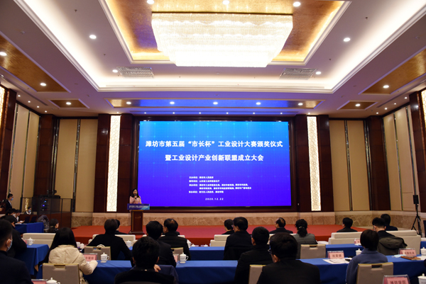 本网讯 12月22日上午,潍坊市第五届“市长杯”工业设计大赛颁奖仪式暨工业设计产业创新联盟成立大会在富华国际会议中心举行,我校冯滨鲁校长受邀参加。会上,我校当选为潍坊市工业设计产业创新联盟理事长单位,潍坊市副市长刘建国为我校授牌。我校工业设计教研室主任李峻峰代表联盟理事长单位发言。