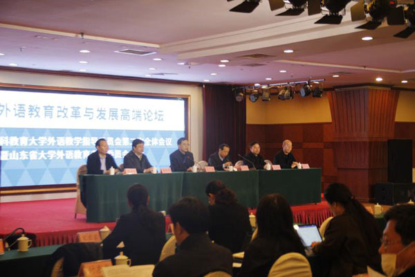 本网讯 12月25至26日,由山东省本科教育大学外语教学指导委员会主办,我校外国语学院承办的大学外语教育改革与发展高端论坛暨山东省本科教育大学外语教学指导委员会第二次全体会议在潍坊召开,来自全省30余所高校的外语专家和院系负责人参加了大会。副校长丁子信出席大会并致辞。