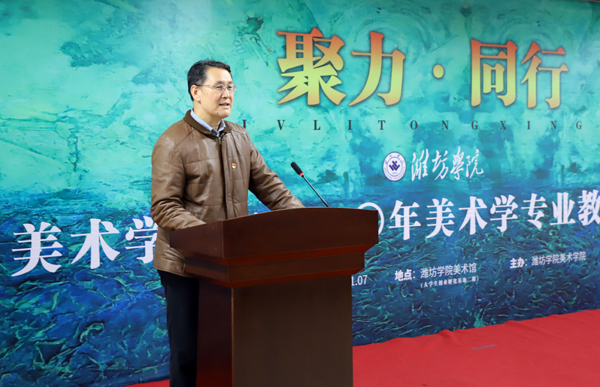 本网讯 12月29日,潍坊学院美术学院“聚力同行—2020年美术学专业教学年鉴展”在我校美术馆开幕。副校长赵光强、宁波大学潘天寿建筑与艺术设计学院院长徐仲偶、潍坊市文联副主席冯传增、潍坊美术界和省内外同行专家学者与学校教务处相关负责同志参加开幕式。