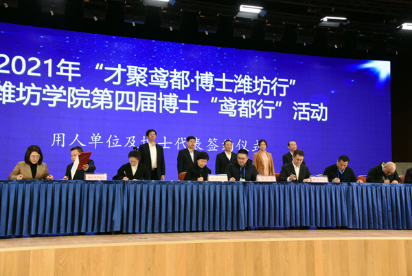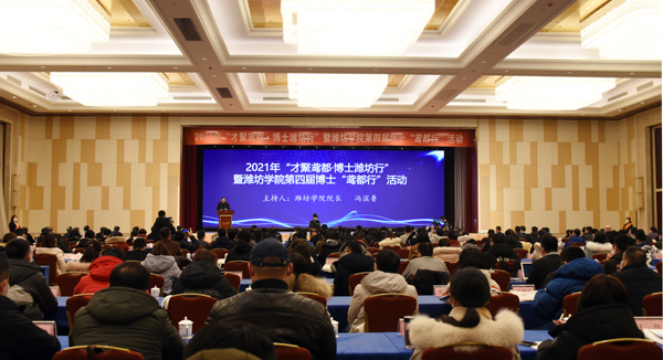 本网讯 1月9-10日,由潍坊市人才工作领导小组办公室、潍坊市人力资源和社会保障局、潍坊学院共同主办的2021年“才聚鸢都·博士潍坊行”暨潍坊学院第四届博士“鸢都行”活动开幕。本次活动采取线上线下相结合的方式,海内外129所高校的184名优秀博士参加了9日开幕式现场活动,132名博士线上参加活动。开幕式线上直播关注度达到20余万人。