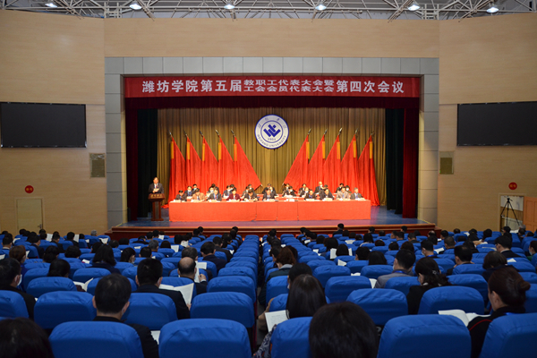 副校长王旭升向大会作了《五届三次教代会提案办理工作报告》,工会主席孟祥亭作《工会工作报告》,发展规划处处长曲振国对《潍坊学院章程》修订和《潍坊学院“十四五”高质量发展规划纲要》编制情况作了说明。