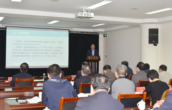 会上,各管理部门和教辅单位负责同志一一上台,分别结合学校重点工作,对2021年部门重点工作和推进措施进行了汇报交流。