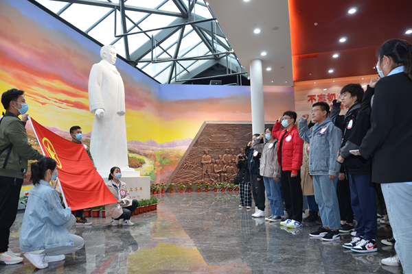 在主题展馆大厅,面对鲜红旗帜,面对烈士雕像,全体党员和团员青年们重温入党、入团誓词,表达对党的忠诚、为党的事业奋斗的决心。同学们在讲解员的带领下走进王尽美党史教育主题展馆,走入了王尽美短暂而光辉的一生,在王尽美百折不挠的奋斗与不顾个人安危的奉献中,寻访王尽美的初心与使命。参观展馆后,同学们在党性教育基地作了学习心得交流,纷纷表示要将王尽美同志追求真理、甘于奉献的精神落实到今后的学习生活中。