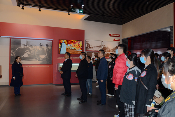 本网讯 4月24日,潍坊学院组织团员青年走进诸城王尽美党性教育基地,开展以“传承红色基因,弘扬‘尽美’精神”为主题的党史学习教育现场教学。学校党委副书记王清明参加现场教学,学生工作处、新闻中心、团委相关负责同志,校学生会、“青马工程”培训班骨干代表共46人参加学习。